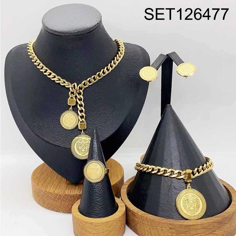 Level B Stainless Steel New Trendy Women Jewelry Coin Animal Lion Golden 4pcs SET