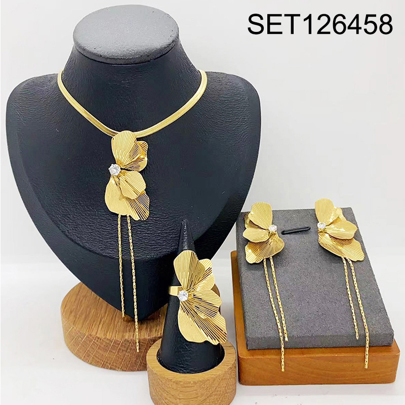 Level B Stainless Steel New Trendy Women Jewelry Flower Golden 3pcs SET