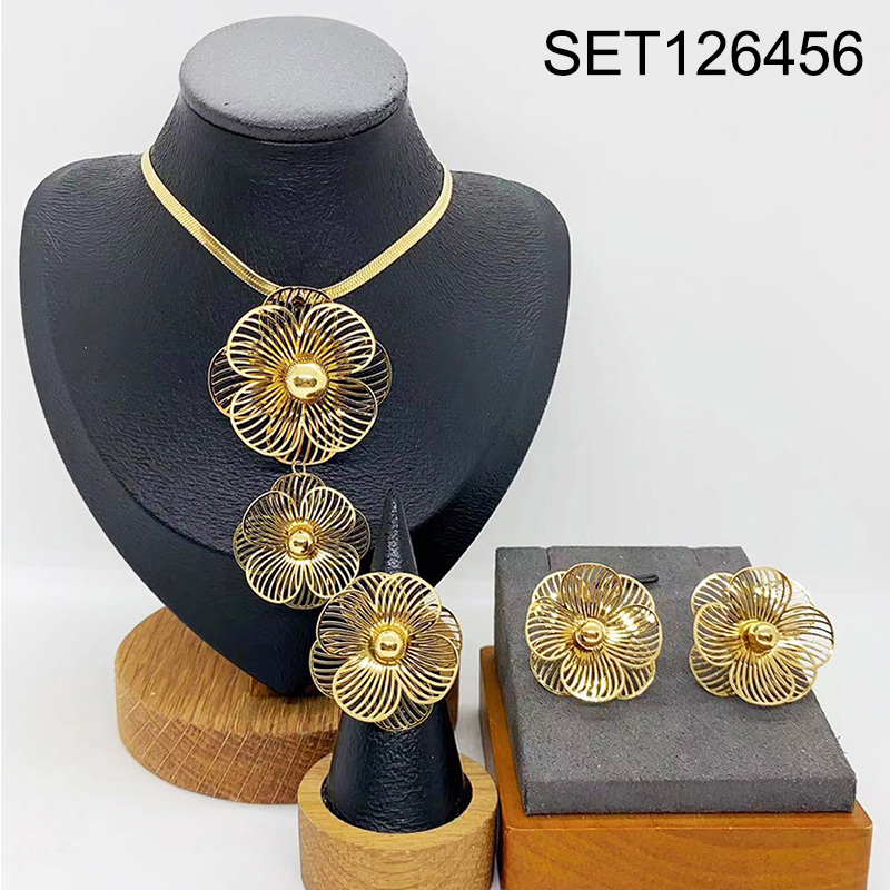 Level B Stainless Steel New Trendy Women Jewelry Flower Golden 3pcs SET