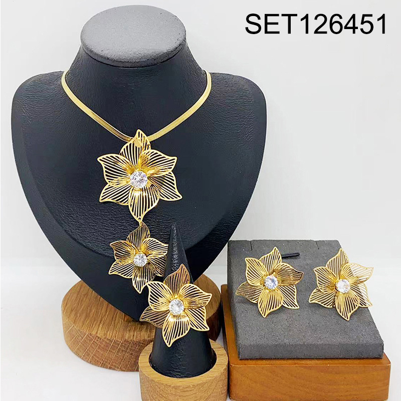 Level B Stainless Steel New Trendy Women Jewelry Flower Golden 3pcs SET