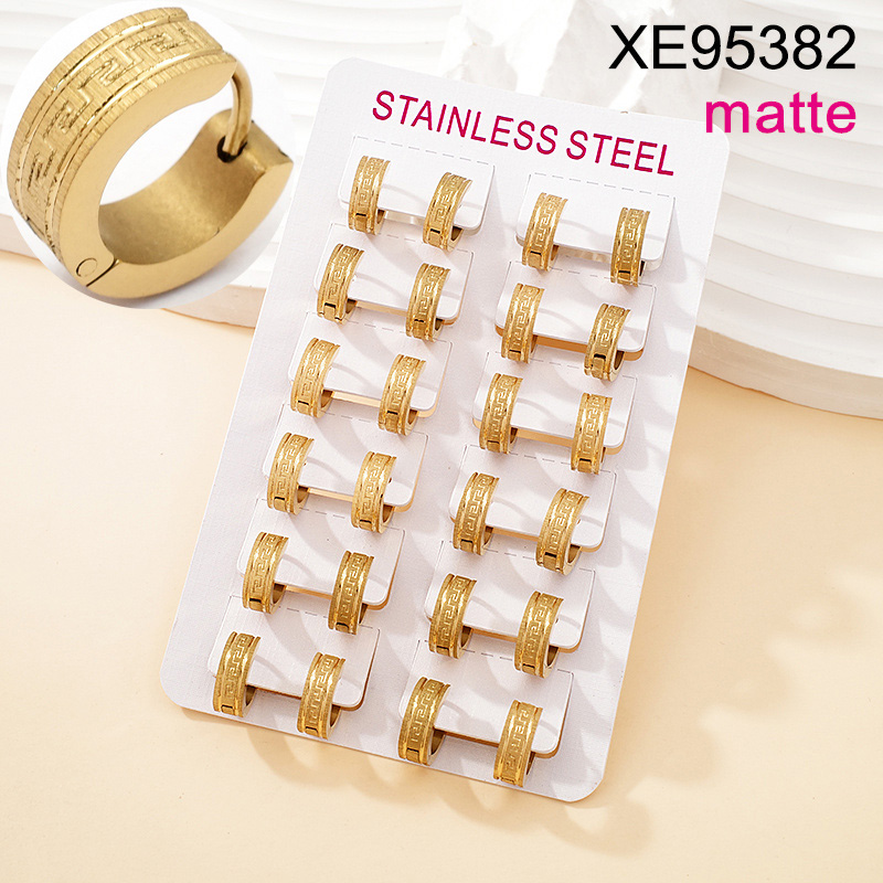 Home > Level B Stainless Steel New Trendy Women Jewelry Great Wall Pattern Golden Hoop Earrings