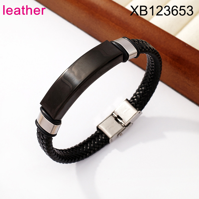 Home > Level B Stainless Steel New Trendy Man Jewelry Two Tone Leather Bracelet