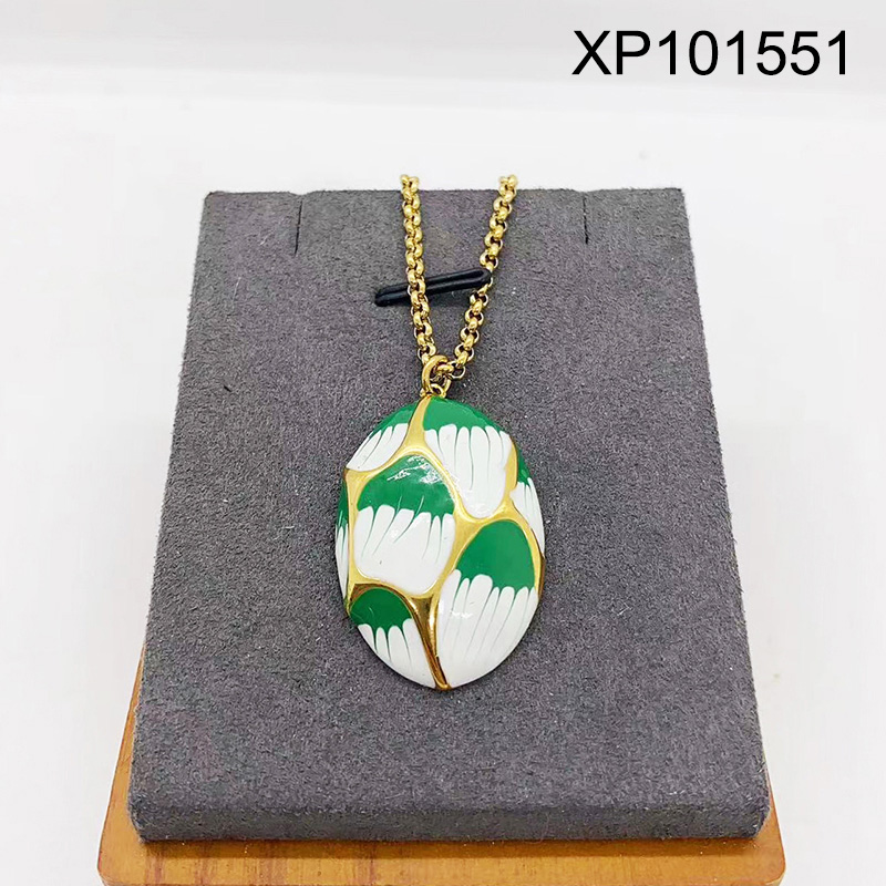 Level B Stainless Steel New Trendy Women Jewelry Drip Oil/Enamel Oval Golden Pendant