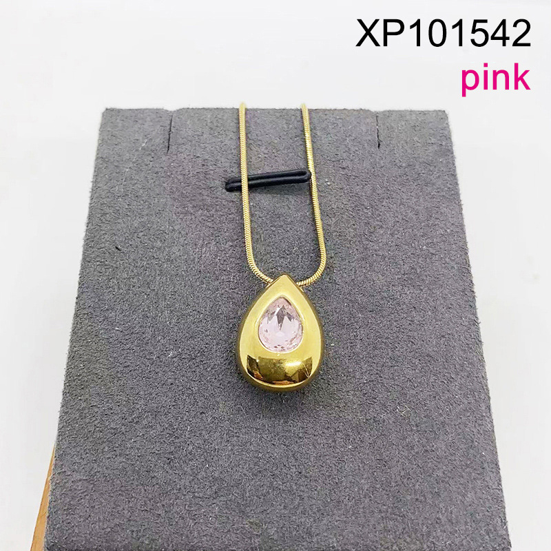 Home > Level B Stainless Steel New Trendy Women Jewelry Water Drip Pink Glass Zircon Golden Pendant