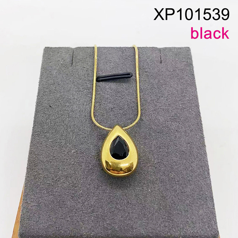 Home > Level B Stainless Steel New Trendy Women Jewelry Water Drip Black Glass Zircon Golden Pendant