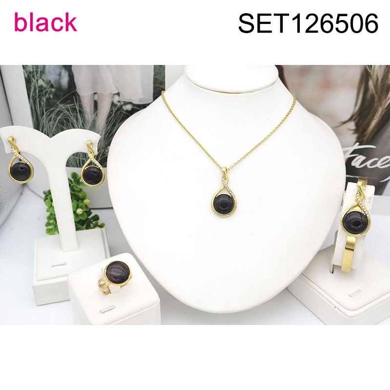 Home > Level B Stainless Steel New Trendy Women Jewelry Round Black Opal Golden 4pcs SET