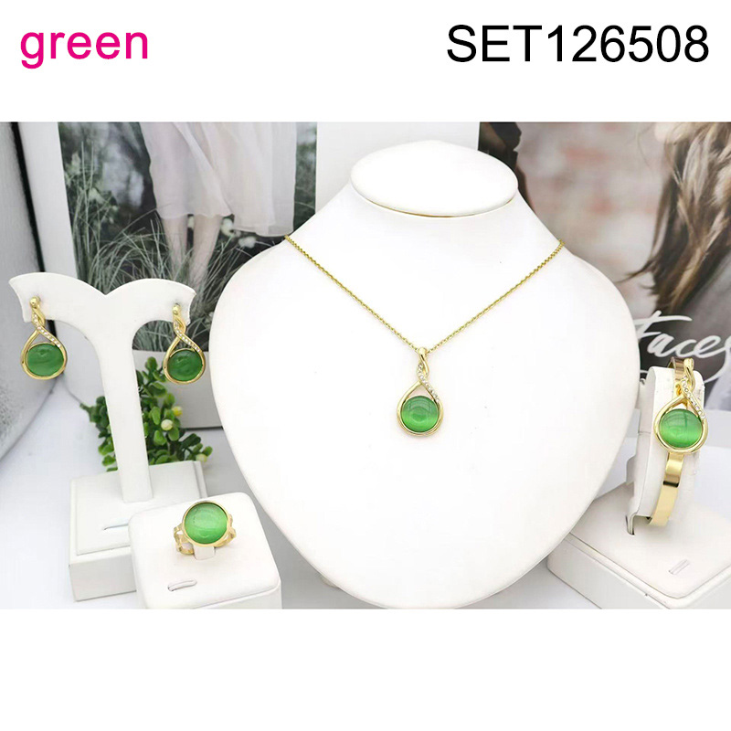 Home > Level B Stainless Steel New Trendy Women Jewelry Round Green Opal Golden 4pcs SET