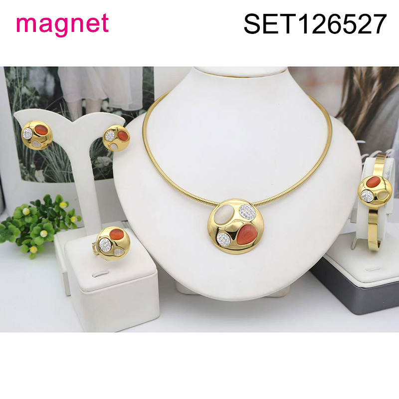 Level B Stainless Steel New Trendy Women Jewelry Round Golden Magnet buckle 4pcs SET
