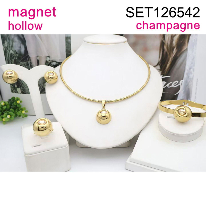 Level B Stainless Steel New Trendy Women Jewelry Hollow Round Champagne Stone Golden Magnet buckle 4pcs SET