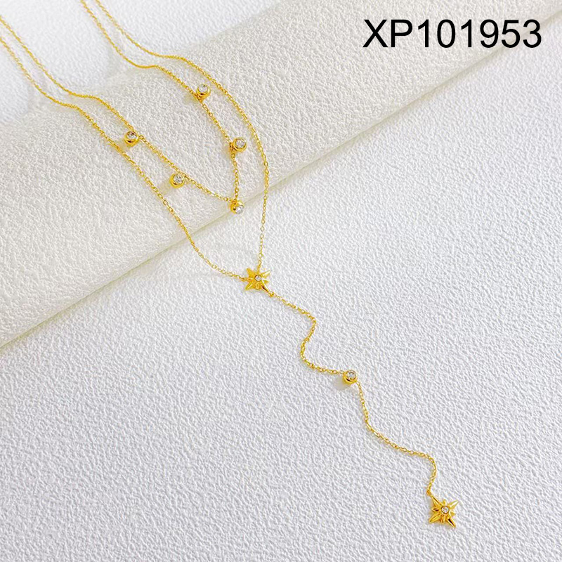 Home > Level B Stainless Steel New Trendy Women Jewelry Two Layers Chain Eight-Pointed Star Golden Pendant