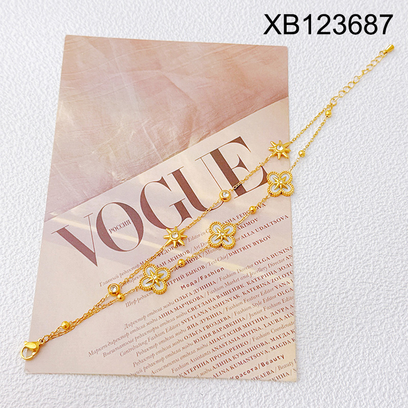 Level B Stainless Steel New Trendy Women Jewelry Two Layer Chain SYC Eight-Pointed Star Golden Bracelet