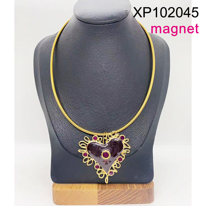 Level B Stainless Steel New Trendy Women Jewelry Drip Oil/Enamel Heart Golden Magnet buckle Pendant