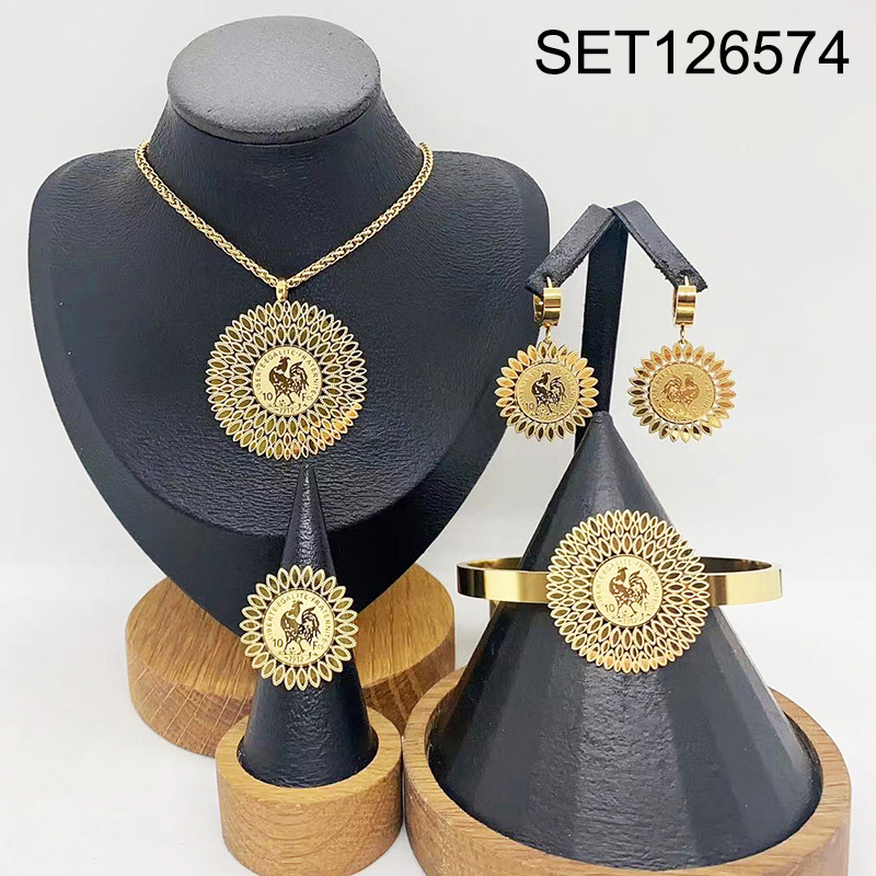 Level B Stainless Steel New Trendy Women Jewelry Animal Chicken Coin Golden 4pcs SET