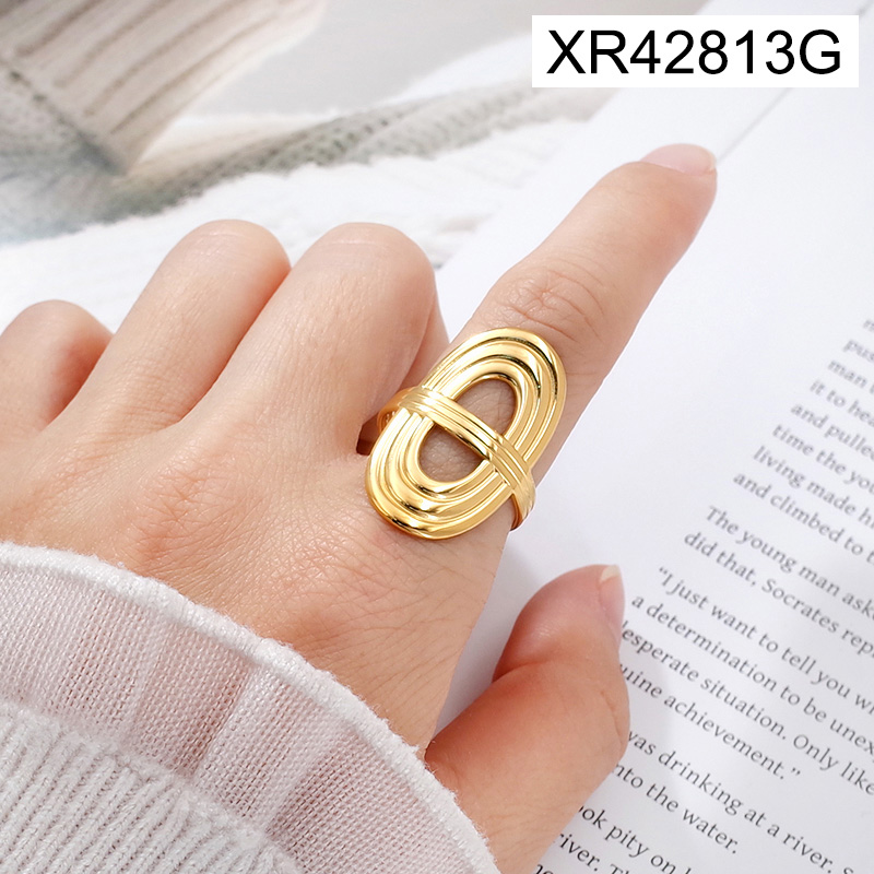 Level A Stainless Steel New Trendy Women Jewelry Oval Golden Open Rings;Ring size can be adjusted freely