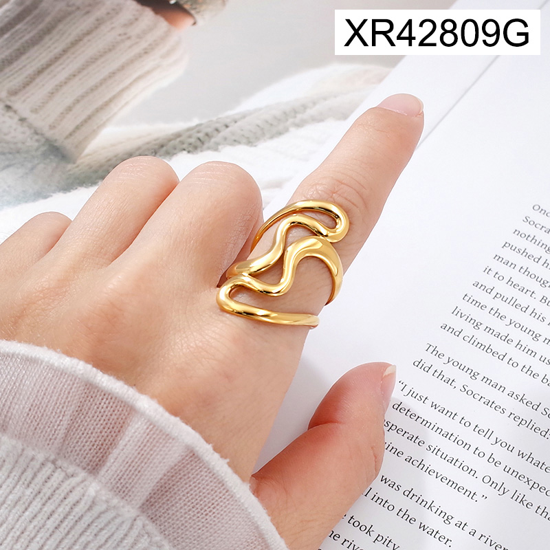 Level A Stainless Steel New Trendy Women Jewelry Golden Open Rings;Ring size can be adjusted freely