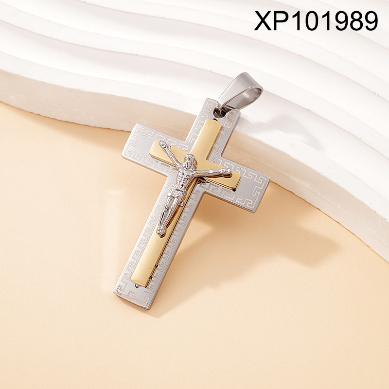 Level B Stainless Steel New Trendy Man Jewelry Cross Jesus Two Tone Pendant