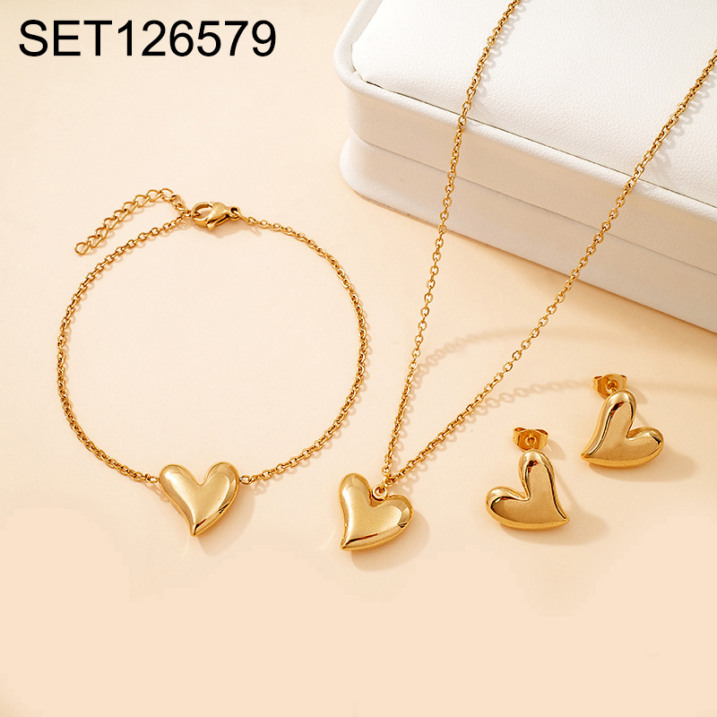 Level B Stainless Steel New Trendy Women Jewelry Heart Golden 3pcs SET