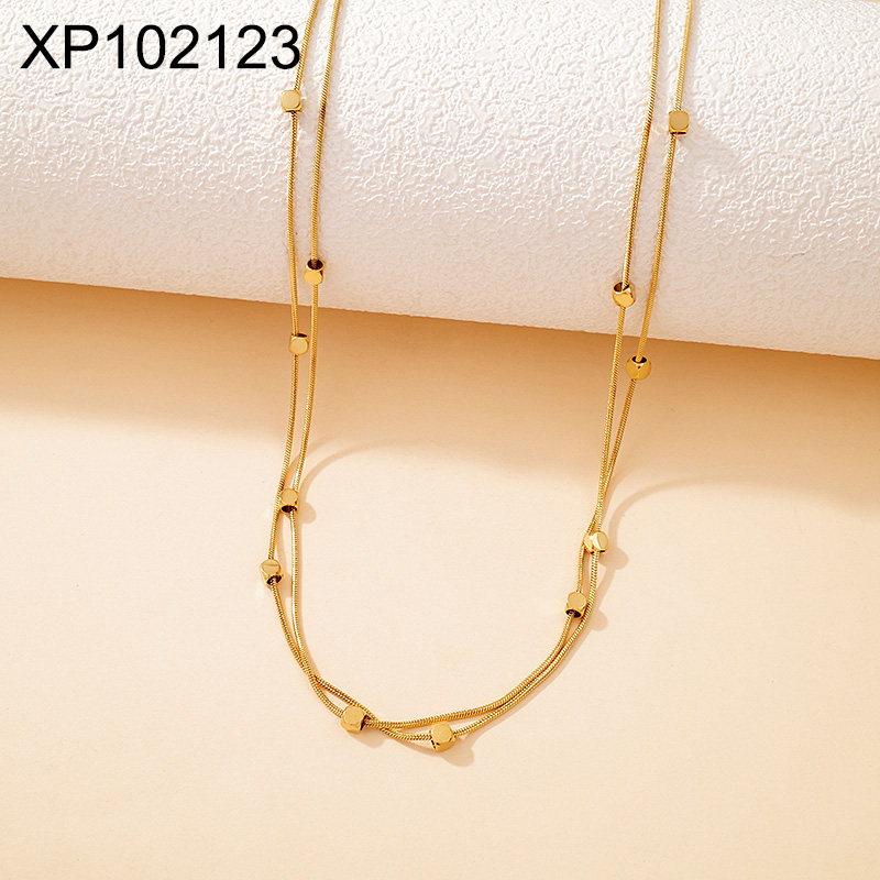 Level B Stainless Steel New Trendy Women Jewelry Two Layers Chain Cube Golden Pendant