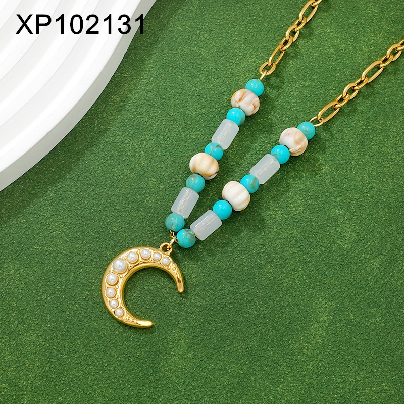 Level B Stainless Steel New Trendy Women Jewelry Pearl Style/Plastic Beads Moon Golden Pendant