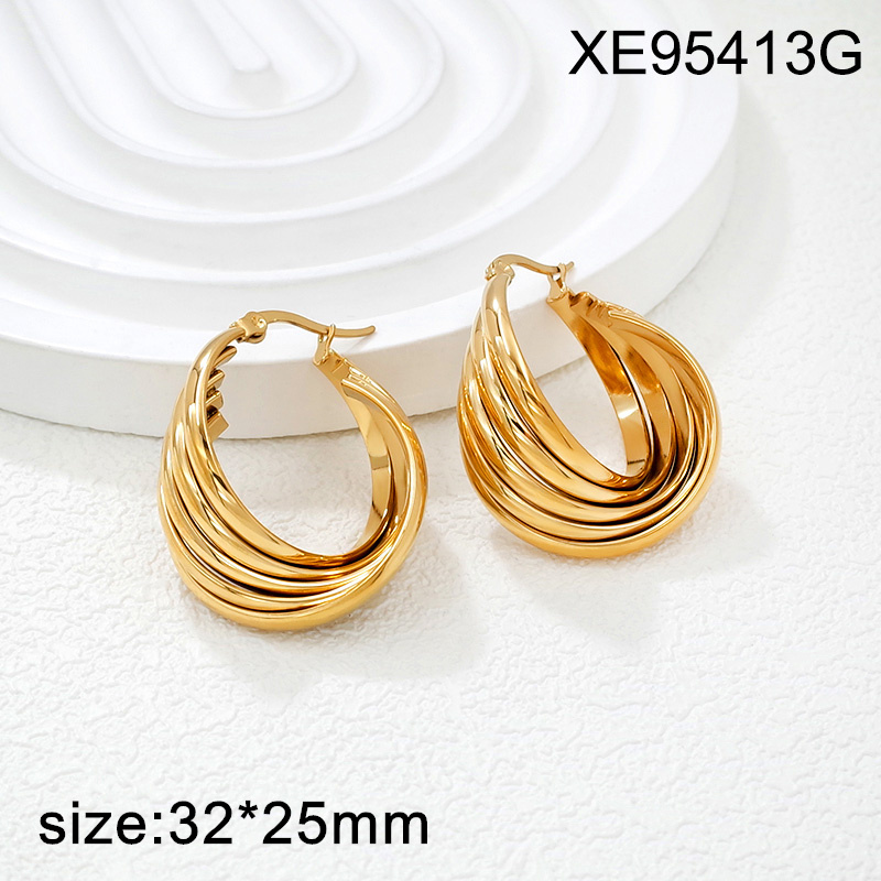 Home > Level A Stainless Steel New Trendy Women Jewelry Golden Five line multi-layer Hoop Earrings