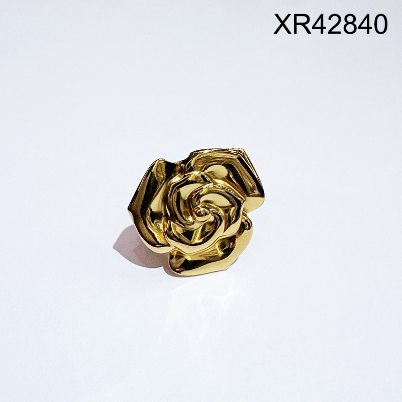Level C Stainless Steel New Trendy Women Jewelry Flower Golden Open Rings;Ring size can be adjusted freely