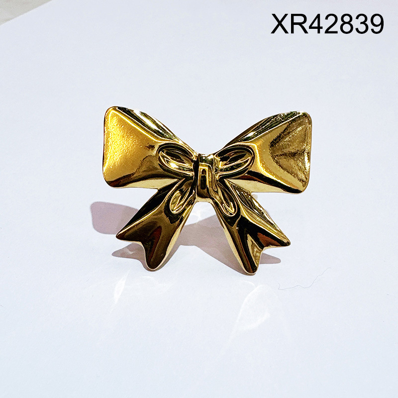 Level C Stainless Steel New Trendy Women Jewelry Bowknot Golden Open Rings;Ring size can be adjusted freely