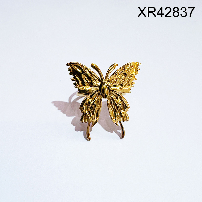 Level C Stainless Steel New Trendy Women Jewelry Animal Butterfly Golden Open Rings;Ring size can be adjusted freely