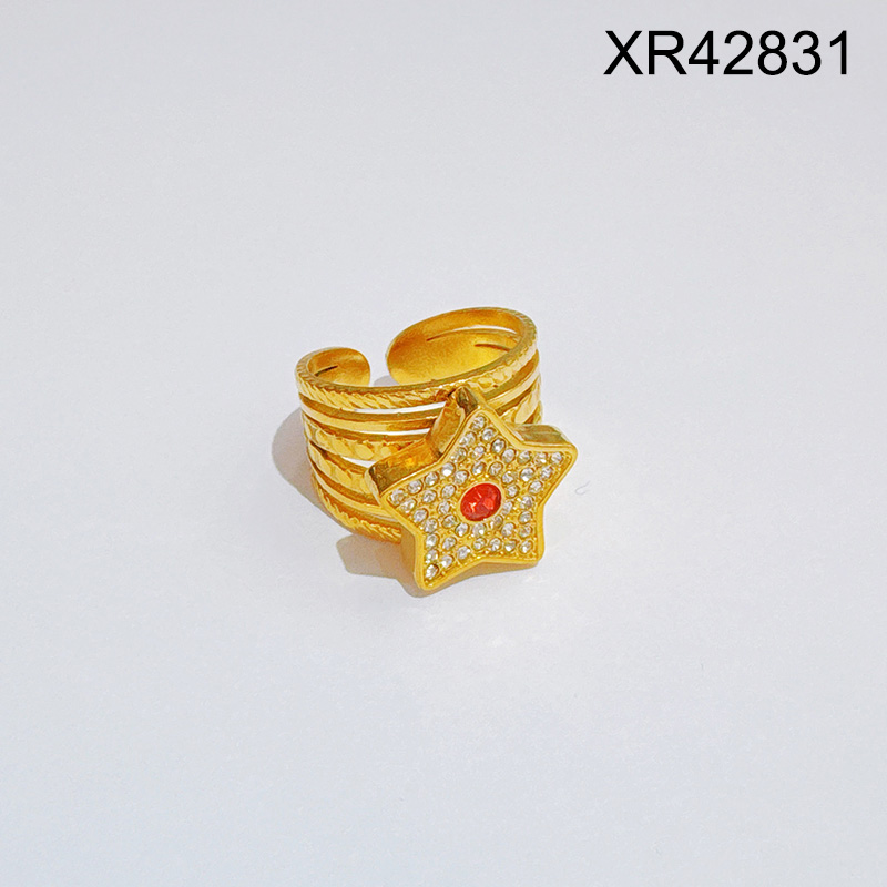 Level C Stainless Steel New Trendy Women Jewelry Star Golden Open Rings;Ring size can be adjusted freely