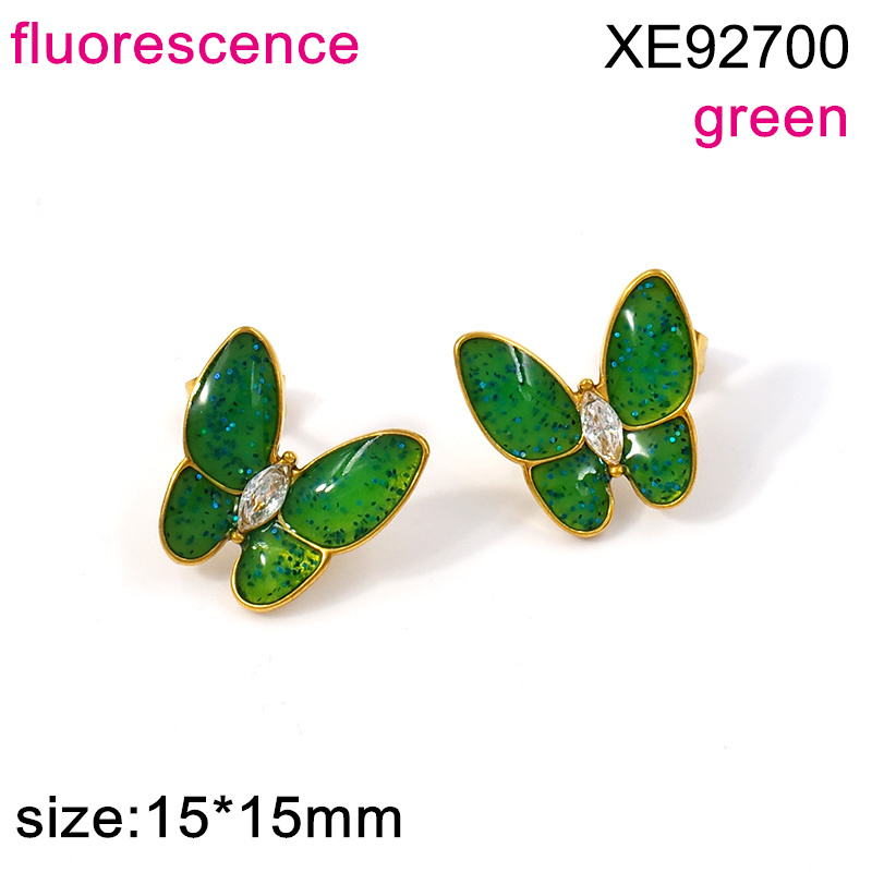 Home > Level A Stainless Steel New Trendy Women Jewelry Animal Butterfly Fluorescence Green Enamel Earrings