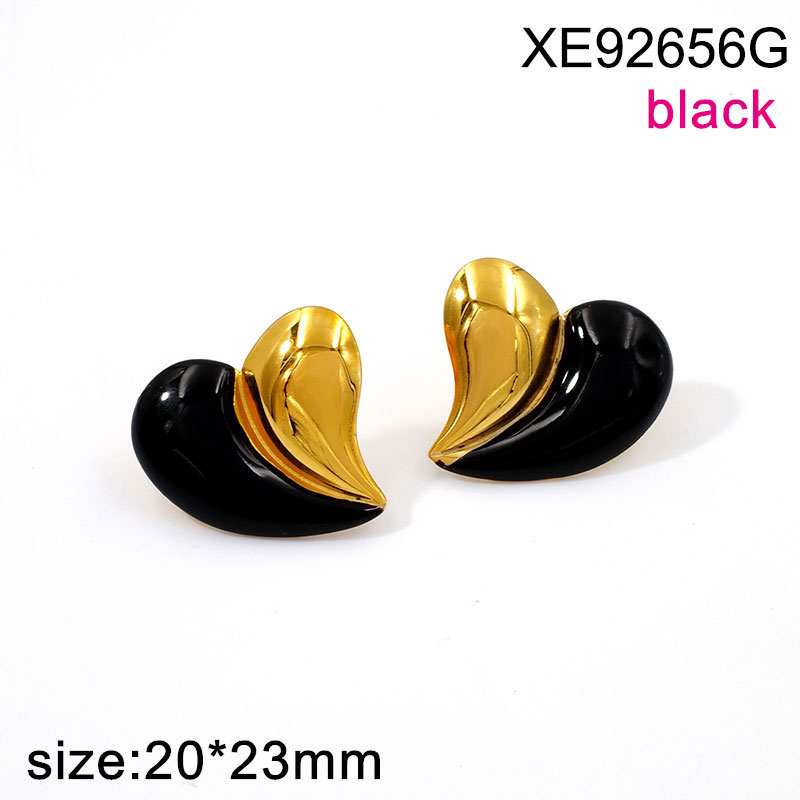 Home > Level A Stainless Steel New Trendy Women Jewelry Drip Oil/Enamel Black Heart Golden Valentine's Day Earrings