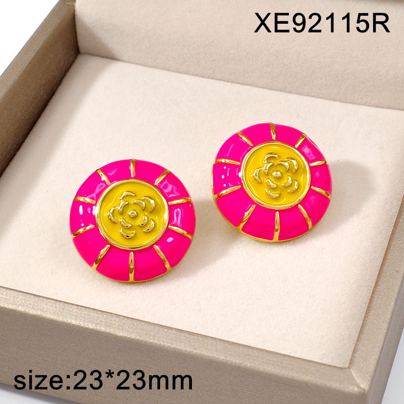 Home > Level A Stainless Steel Jewelry New Trendy Drip Oil/Enamel Flower Golden Earrings