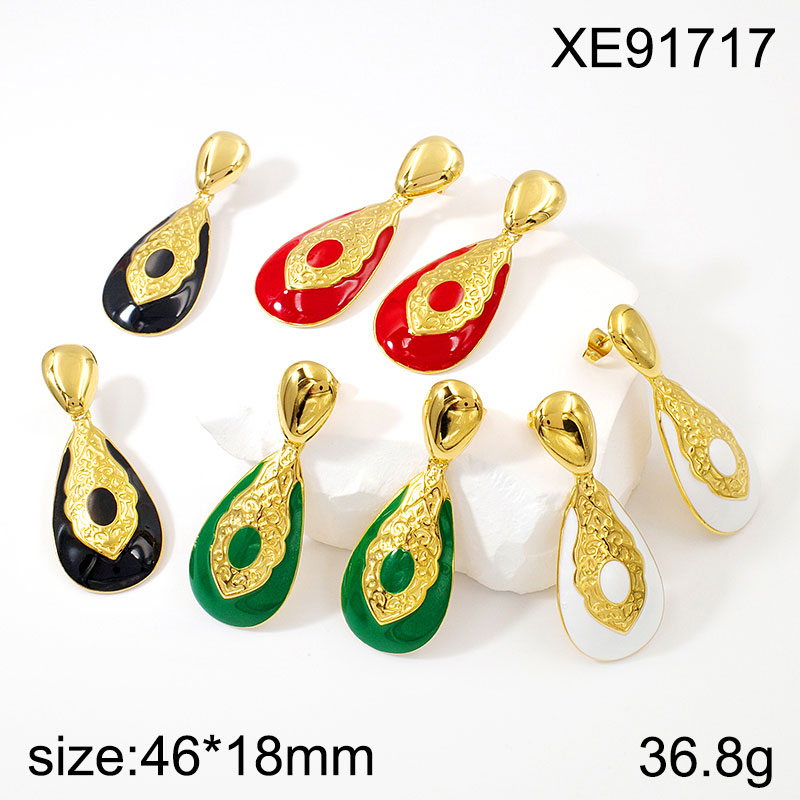 Home > Level A Stainless Steel Jewelry New Trendy Drip Oil/Enamel Water Drip Golden Earring