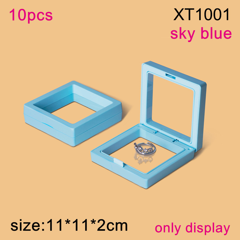 Fashion Jewelry Transparent PE Film Display Box Small Commodity Suspension Sky blue Square Packaging Box;Only display