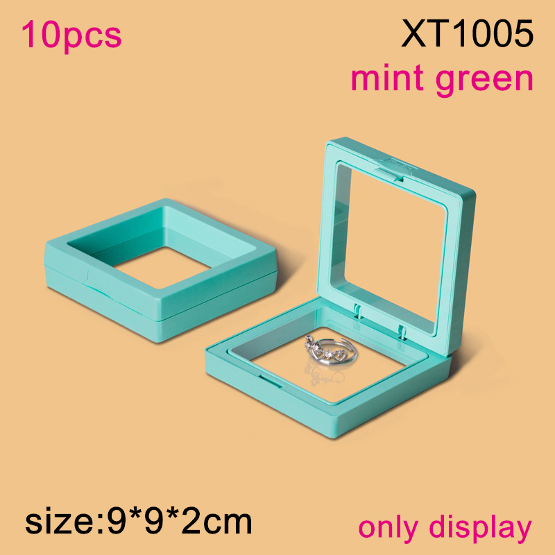 Fashion Jewelry Transparent PE Film Display Box Small Commodity Suspension Mint green Square Packaging Box;Only display