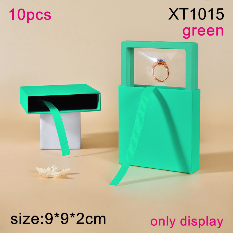 Fashion Jewelry Transparent PE Film Display Box Small Commodity Suspension Green Square Packaging Box;Only display
