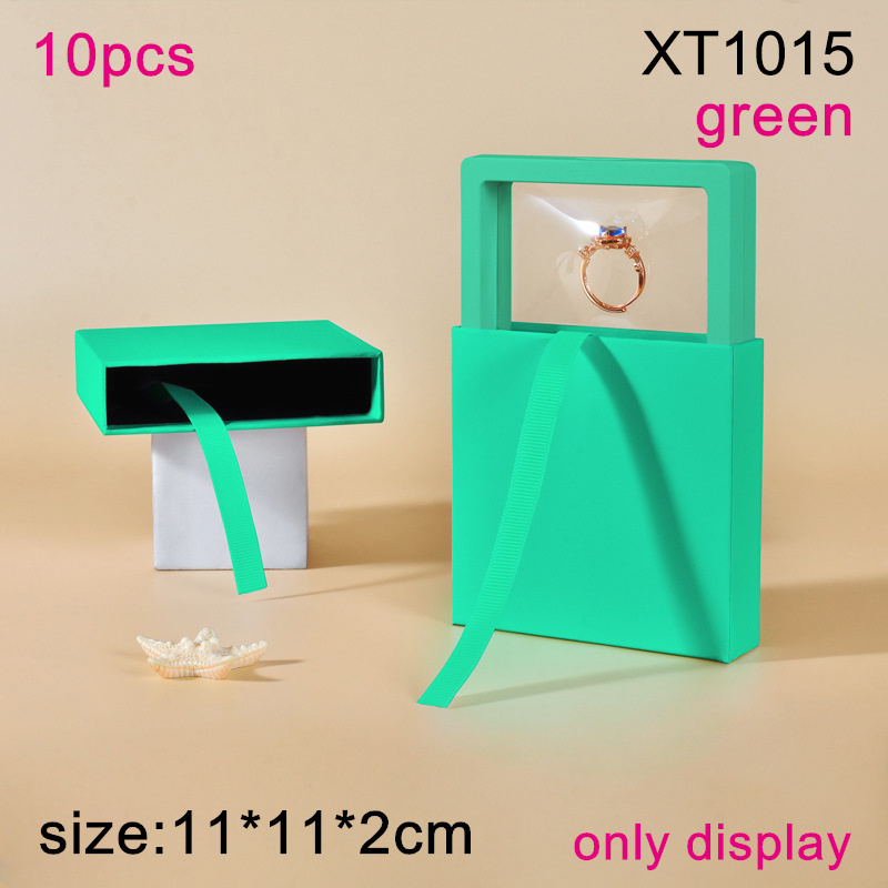 Fashion Jewelry Transparent PE Film Display Box Small Commodity Suspension Green Square Packaging Box;Only display