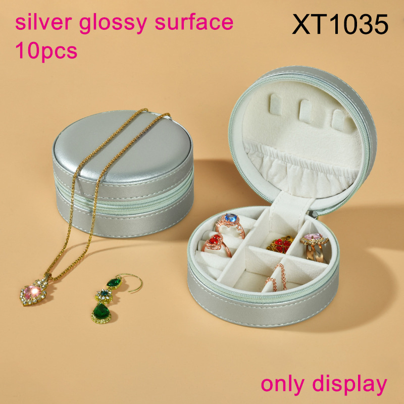 Fashion Jewelry Portable Multi Functional Storage Silver glossy surface Round PU leather Jewelry box;Only display