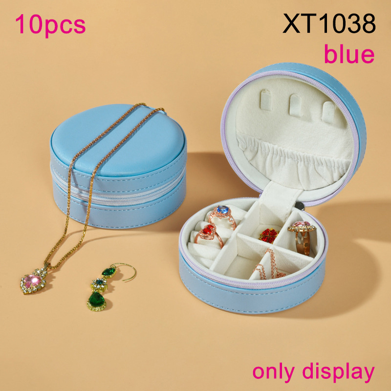 Home > Fashion Jewelry Portable Multi Functional Storage Blue Round PU leather Jewelry box;Only display