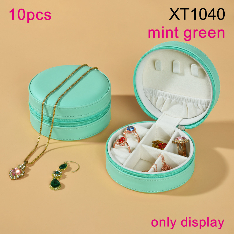 Fashion Jewelry Portable Multi Functional Storage Mint green Round PU leather Jewelry box;Only display