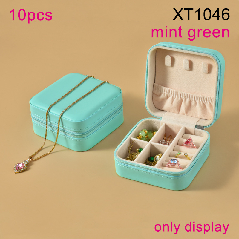 Home > Fashion Jewelry Portable Multi Functional Storage Mint green Square PU leather Jewelry box;Only display