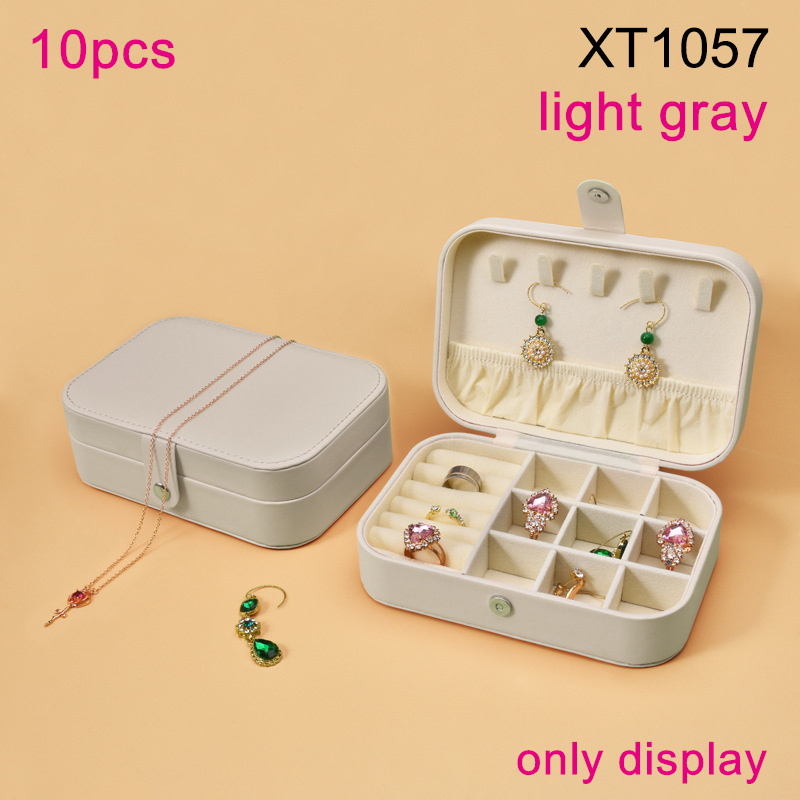 Fashion Jewelry Portable Multi Functional Storage Light gray Rectangle PU leather Jewelry box;Only display