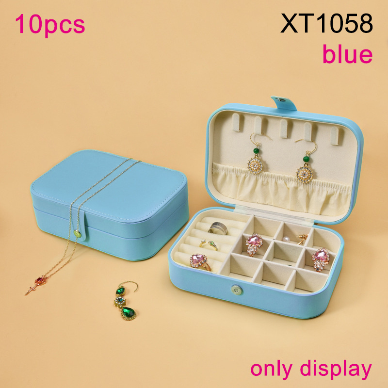 Fashion Jewelry Portable Multi Functional Storage Blue Rectangle PU leather Jewelry box;Only display