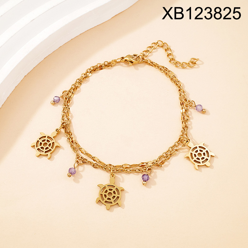 Level B Stainless Steel New Trendy Women Jewelry Two Layers Chain Summer beach Animal Turtle Golden Bracelet
