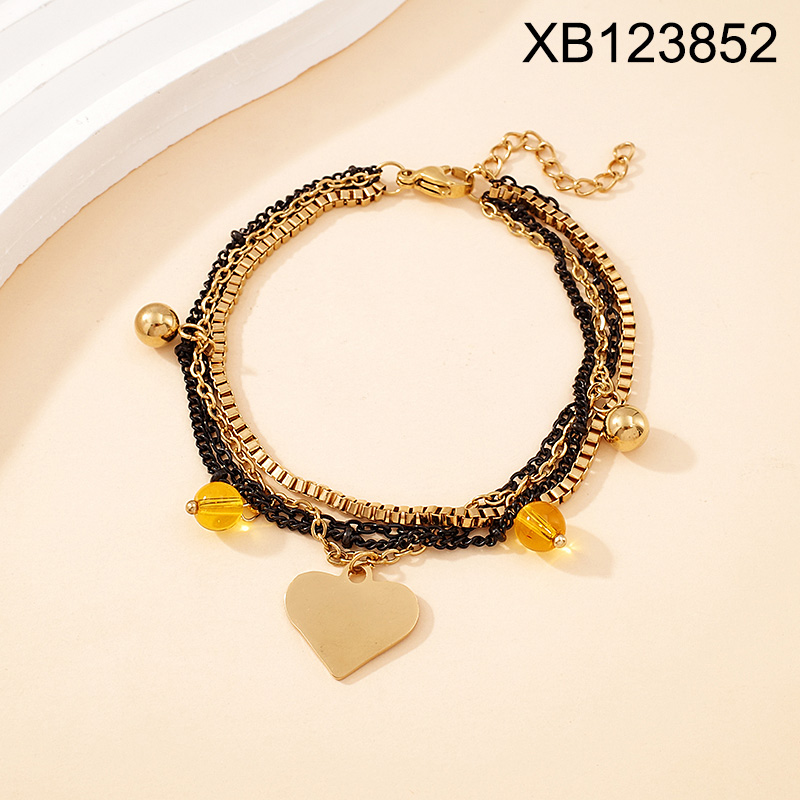 Level B Stainless Steel New Trendy Women Jewelry Four Layers Chain Heart Two Tone Bracelet