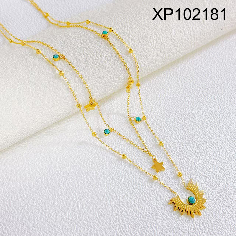 Home > Level B Stainless Steel New Trendy Women Jewelry Two Layers Chain Golden Pendant