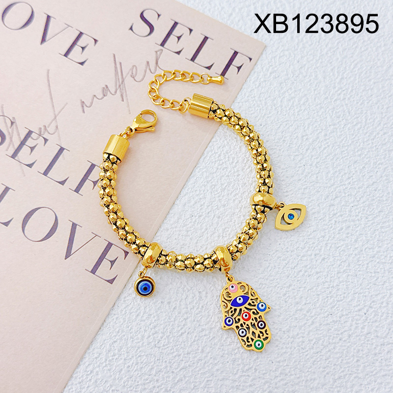 Level B Stainless Steel New Trendy Women Jewelry Hamsa Hand Palm Golden Bracelet