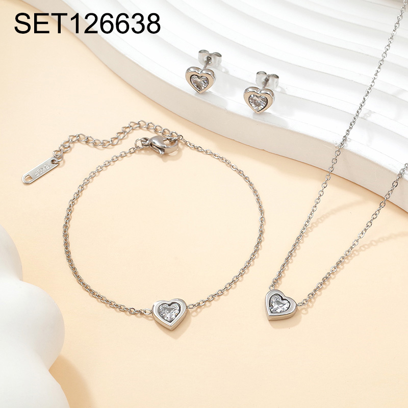 Home > Level B Stainless Steel New Trendy Women Jewelry Heart White Zircon Steel color 3pcs SET