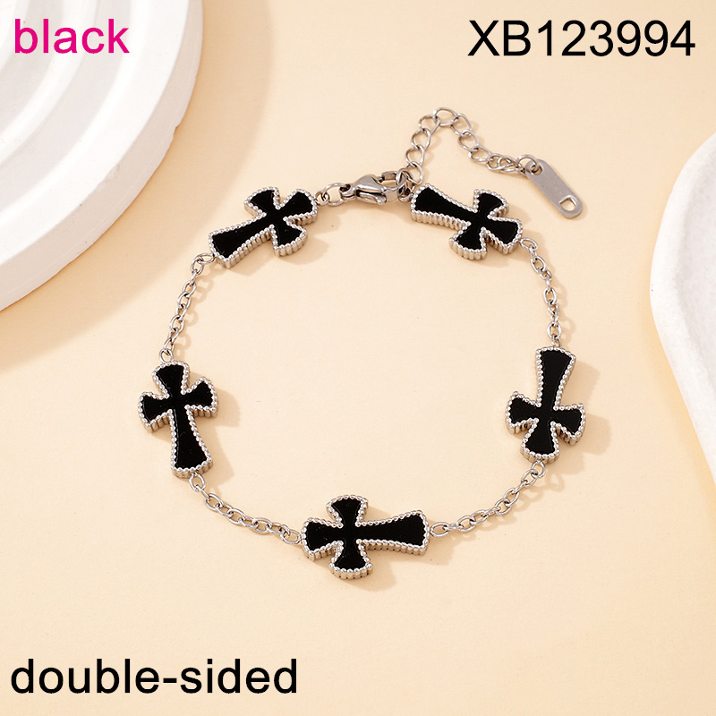 Home > Level B Stainless Steel New Trendy Women Jewelry Black Acrylic Cross Golden Bracelet