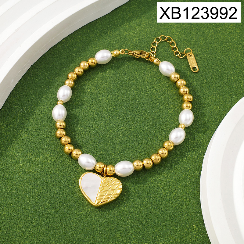 Home > Level B Stainless Steel New Trendy Women Jewelry Pearl Style/Plastic Beads Heart Golden Bracelet