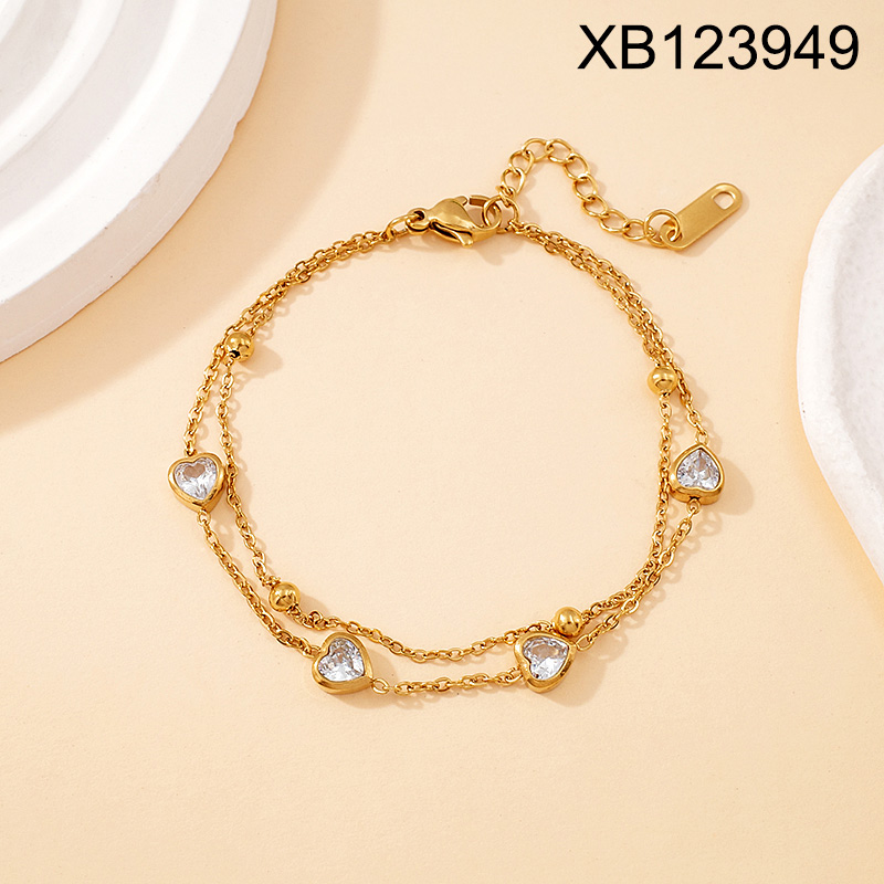 Level B Stainless Steel New Trendy Women Jewelry Two Layers Chain Heart Golden Bracelet